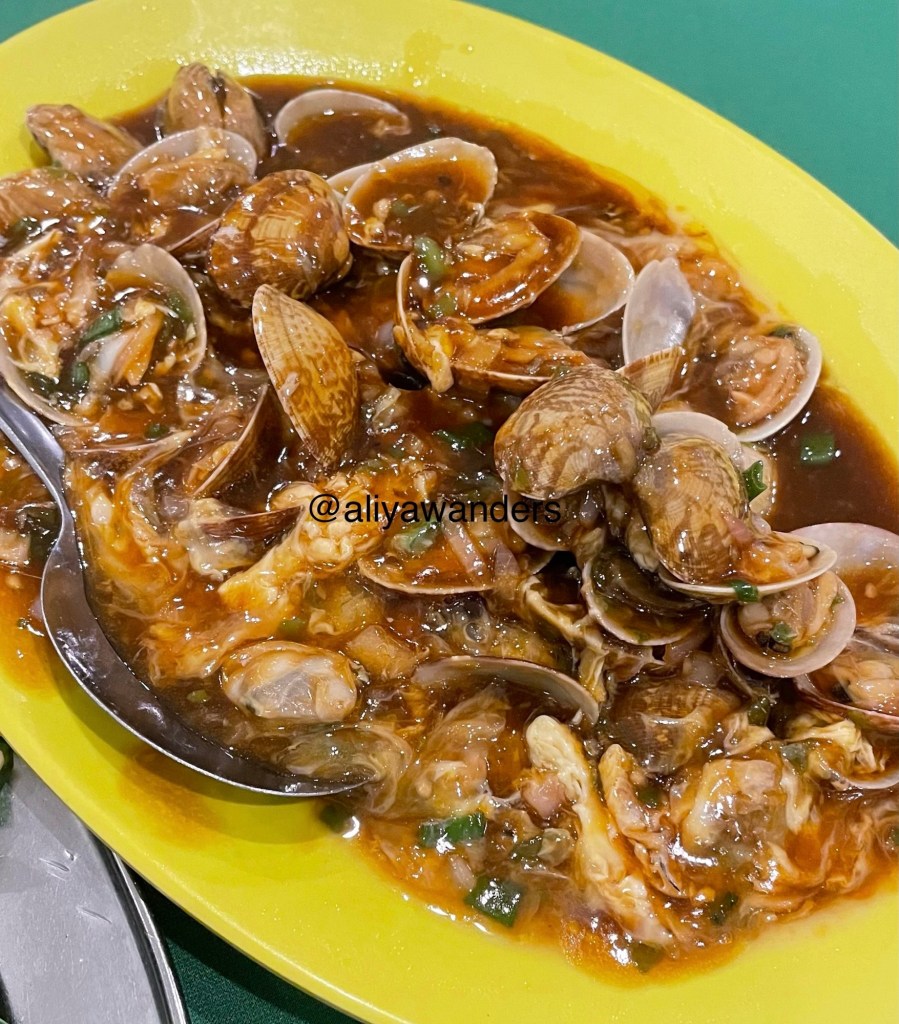 The Lala is generously covered in the sweet sour sauce, slightly spicy sauce, I can taste Garlic, and my guess is, also ginger and tomato sauce. The best way to enjoy asian dishes is always with hands, If the lalas are still in their shells, you can use your fork or fingers to pry them open. Use your hand to pull the meat out and eat it directly, dont forget to sedut (sip) the gravy from the shell. Thats how you should enjoy lala in my opinion. But, If you really have to use fork and spoon, you can also pry open the lala and  pull the meat out of the Shell. The gravy has chopped birds eye chillies too, so just be careful unless you are a fan of spicy food.