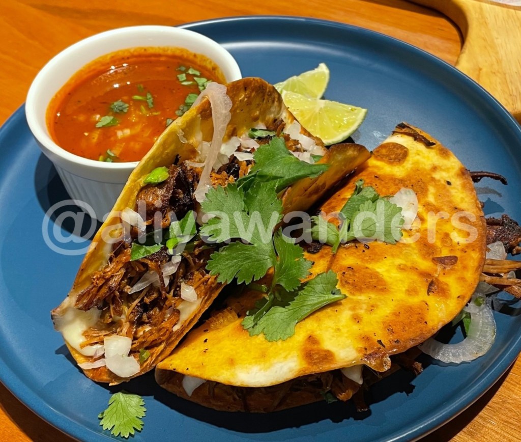I only managed to grab a small bite of this dish, the tacos were perfectly crispy, just as they should be. The consommé was packed with flavor – chili, onion, garlic, and spices all blending together deliciously. But the filling oddly reminded me of anchovies! That was quite unexpected.