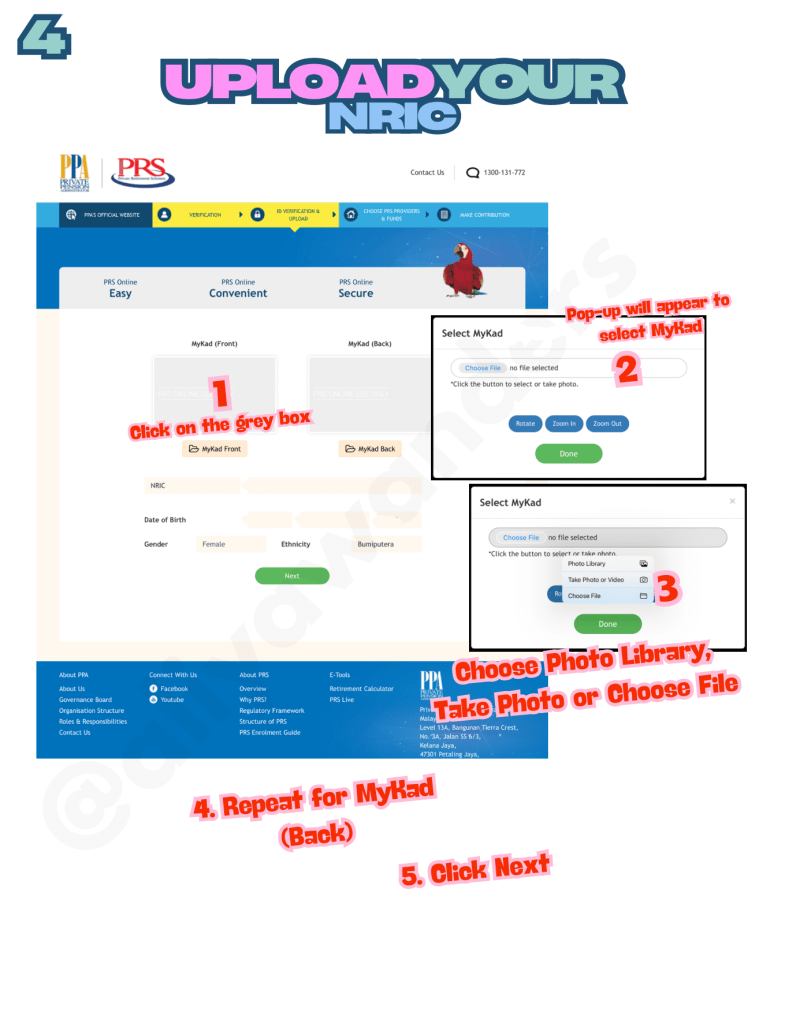 4. Next, upload your NRIC (front and back). Repeat Steps 1–3 for both sides.