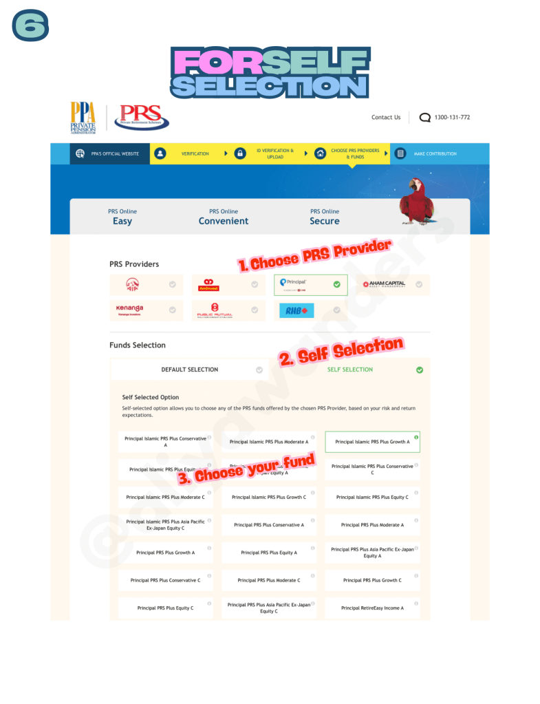 There are two ways to save in PRS—you can either manually select your fund or go with the default selection. If you want to learn more about Default Selection (Do-It-For-Me) and Self Selection, check out [Part 2].
