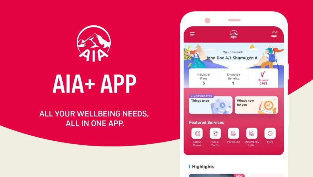 Paperless claims, eMedical cards, real-time updates via AIA+ app.