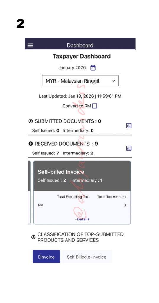 From what I can see, this looks like a summary of all invoices, whether they’re E-Invoices or Self-Billed E-Invoices.