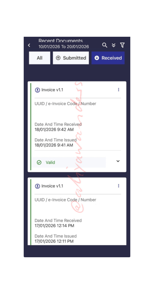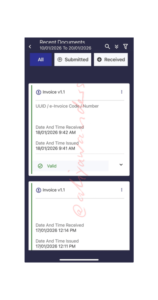If you swipe left on “Received Documents”, there’s another category “Self-Billed Invoice” (photo 2):